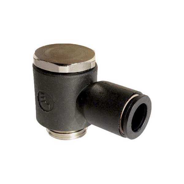 Description Metric Push-to-Connect Fitting, Application Air, Fitting Side A Connection Type Push-to-Connect, Fitting Side B Connection Type Push-to-Connect, Fitting Side A Tube Outer Diameter 6 mm, Fitting Side B Tube Outer Diameter 4 mm, Fitting Material Polymer, Color Black, Maximum Operating Pressure 20 barg, Maximum Operating Temperature 176 Degrees F, Overall Length 38 1/2 mm, Specific Fitting Shape 90 Degrees Elbow Adapter, Release Type Ring