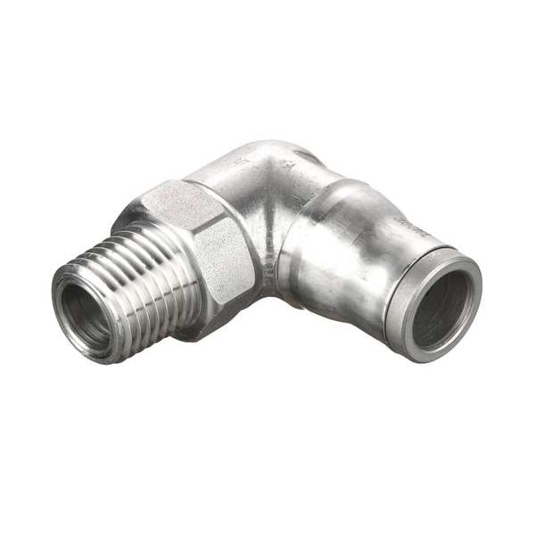 Description Fractional All Metal Push-to-Connect Fitting, Application Air, Grease, Lubricant, Non-Potable Water, Fitting Side A Connection Type MNPT, Fitting Side B Connection Type Push-to-Connect, Fitting Side A Pipe Size 1/2 mm, Fitting Side B Tube Outer Diameter 3/8 in, Fitting Material Brass, Fitting Thread Size NPT1/2, Color Silver, Maximum Operating Pressure 20 barg, Maximum Operating Temperature 302 Degrees F, Overall Length 1 1/16 in, Specific Fitting Shape 90 Degrees Elbow Adapter