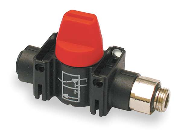 Description Mini Ball Valve, Body Material Glass-Filled Nylon, Body Style Inline, 1-Piece, Tube Size 1/4 in, Connection Type Push x Push, Full Port, Max. Pressure 145 psi CWP, Temp. Range -4 Degrees F to 176 Degrees F, Ball Material Glass Filled Nylon, Seat Material Buna-N, Handle Type Screw Driver Slot Compact Handle, Handle Material Technical Polymer, Stem Material Brass, Body Seal Material Buna-N