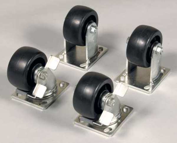 Caster Set, 2 in. W, Steel, Rubber, Black