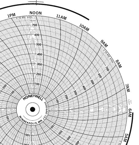 SKU G1197761CategoriesDescription Circular Paper Chart, Chart Size 11.875 In, Range 0 to 1000, Recording Time 1 Day, For Use With Honeywell Recorders, Package Quantity 100graingerSKU: 5MEA7, mscSKU: , zoro_no: G1197761, mongo_id: 65bbe79a9a749db822747c04