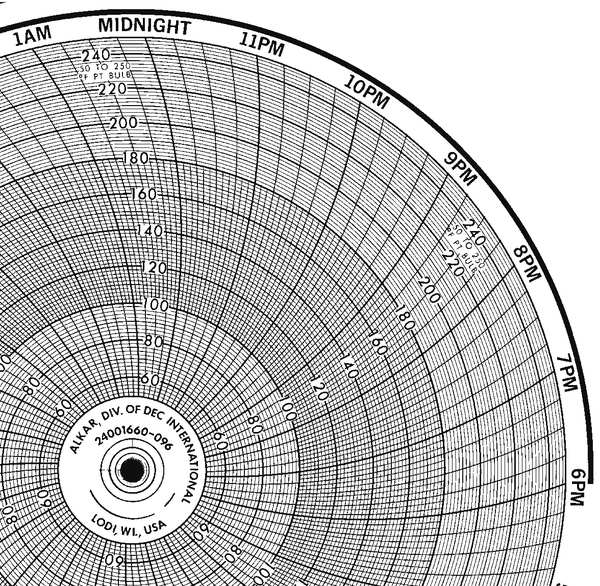 $63.36 / eachWeb priceChart, 10.313 In, 50 to 250, 1 Day, PK100SKU G3177973CategoriesDescription Circular Paper Chart, Chart Size 10.313 In, Range 50 to 250, Recording Time 1 Day, For Use With Honeywell Recorders, Package Quantity 100graingerSKU: 5MED4, mscSKU: , zoro_no: G3177973, mongo_id: 65bbe5b23aaddbd5a9fde97a
