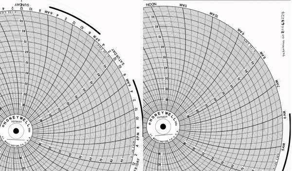 SKU G1728693CategoriesDescription Circular Paper Chart, Chart Size 11.875 In, Range 0 to 100, Recording Time 2 Side, 1 & 7 Day, For Use With Honeywell Recorders, Package Quantity 25graingerSKU: 5MER7, mscSKU: , zoro_no: G1728693, mongo_id: 65bbe94f22d7a989a99496ea