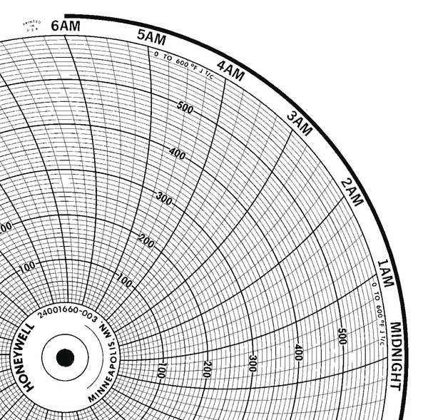 SKU G0266122CategoriesDescription Circular Paper Chart, Chart Size 10.313 In, Range 0 to 600, Recording Time 1 Day, For Use With Honeywell Recorders, Package Quantity 100graingerSKU: 5MEF2, mscSKU: , zoro_no: G0266122, mongo_id: 65bbe89622d7a989a9901b7a