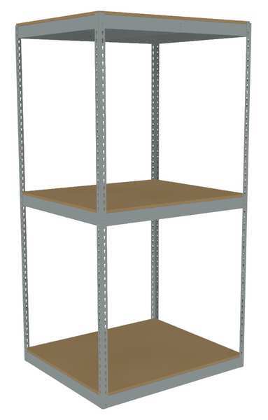 $387.49 / eachWeb priceBoltless Shelving Unit, 36-5/8"D x 42-5/8"W x 84"H, 3 Shelves, SteelSKU G2000691CategoriesDescription Boltless Shelving, Angle, Overall Depth 36 in, Overall Height 84 in, Overall Width 42 in, Shelf Gauge 14 ga, Shelf Adjustment Increments 1 1/2 in, Steel, Particleboard, Steel, (12) Beams, (4) Posts, Includes Decking Yes, 2,250 lb, Whole Unit Load Capacity 6,750 lb, Starter, Open, Post Gauge 14 ga, Number of Shelves 3, Maximum Post Load Capacity 8,000 lb with Beams Evenly Spaced at 24 in, Powder Coated, Heavy-Duty, GraygraingerSKU: 44P260, mscSKU: , zoro_no: G2000691, mongo_id: 65bbe98022d7a989a995cd84