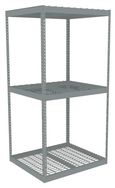 $497.49 / eachWeb priceBoltless Shelving Unit, 36-5/8"D x 42-5/8"W x 84"H, 3 Shelves, SteelSKU G2159705CategoriesDescription Boltless Shelving, Channel, Overall Depth 36 in, Overall Height 84 in, Overall Width 42 in, Shelf Gauge 14 ga, Shelf Adjustment Increments 1 1/2 in, Steel, Steel, Steel, (12) Beams, (4) Posts, Includes Decking Yes, 2,500 lb, Whole Unit Load Capacity 7,500 lb, Starter, Open, SCS Indoor Advantage(R) Certified, Post Gauge 14 ga, Number of Shelves 3, Maximum Post Load Capacity 13,000 lb with Beam Evenly Spaced at 24 in, Powder Coated, Heavy-Duty, GraygraingerSKU: 44P315, mscSKU: , zoro_no: G2159705, mongo_id: 65bbe9a422d7a989a996b538