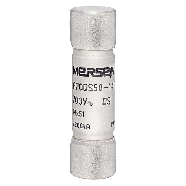 SKU G3228821CategoriesDescription Semiconductor Fuse, 50 A, 690V AC, 700V DC, A70QS-14F Series, Nonindicating, Fast Acting, Body Style Cylindrical, Nonrejection, Interrupt Rating 100kA at 700V DC, 200kA at 690V AC, Fuse Size 2 in L x 35/64 in dia, Length 2 in, Diameter 9/16 in, Equivalent Brand and Series A70QS, Bussmann FWP, Littelfuse L70QS, Mersen A70P, Equivalent Series A70P, A70QS, FWP, L70QS, Body Material Ceramic, Single Element, Standards UL Recognized Component File E76491, CSA Certified, CSA CertifiedgraingerSKU: 36A660, mscSKU: 41016106, zoro_no: G3228821, mongo_id: 65bbe85f9a749db822789837