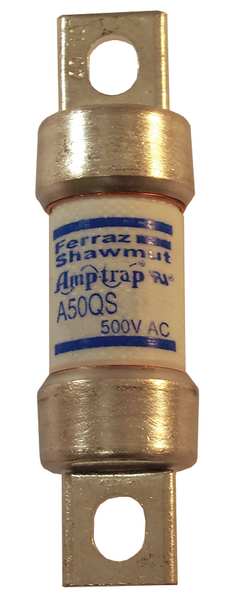 SKU G3517071CategoriesDescription Semiconductor Fuse, 50 A, 500V AC, 500V DC, A50QS-Y Series, Nonindicating, Fast Acting, Body Style Bolt-On, Nonrejection, Interrupt Rating 200kA at 500V AC, 87kA at 500V DC, Fuse Size 3-1/32 in L x 27/32 in dia, Length 3 1/32 in, Diameter 27/32 in, Equivalent Brand and Series A50QS, Bussmann FWH, Littelfuse L50S, Mersen A50P, Equivalent Series A50P, A50QS, FWH, L50S, Body Material Fiberglass, Single Element, Standards CE, UL Recognized, Guide JFHR2, File 60314, CSA Certified LR12636graingerSKU: 6XPH2, mscSKU: , zoro_no: G3517071, mongo_id: 65bbe7453aaddbd5a9084c02