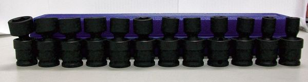 $115.99 / eachWeb price3/8" Drive Impact Socket Set, SAE, Metric, 24 pcsSKU G1887006CategoriesDescription Impact Socket Set, Alloy Steel, Black Oxide, 3/8 in, Impact Rated Yes, Socket Depth Standard, Socket Shape 6-Point, Includes Standard Sockets Yes, Standard Socket Style/Size Standard 6-Point: 1/4 in, 5/16 in, 3/8 in, 7/16 in, 1/2 in, 9/16 in, 5/8 in, 11/16 in, 3/4 in, 7 mm, 8 mm, 9 mm, 10 mm, 11 mm, 12 mm, 13 mm, 14 mm, 15 mm, 16 mm, 17 mm, 18 mm, 19 mm, Standard Socket Count/Style (24) 6-Point, Includes Deep Sockets No, Deep Socket Count/Style None, Drive Type ImpactgraingerSKU: 4PRF3, mscSKU: , zoro_no: G1887006, mongo_id: 65bbe5c23aaddbd5a9fe58a4