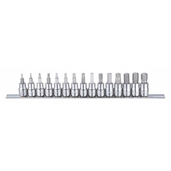 SKU G3701813CategoriesDescription Socket Bit Set, Tip Size 10 mm, 11 mm, 12 mm, 2 mm, 2.5 mm, 3 mm, 3.5 mm, 4 mm, 4.5 mm, 5 mm, 5.5 mm, 6 mm, 7 mm, 8 mm, 9 mm, Tip Style Hex, Overall Length 1 27/32 in, Drive Size 3/8 in, Number of Pieces 15, Alloy Steel, Chrome, Metric, Insulated No, For Screw Type HexgraingerSKU: 54TM33, mscSKU: , zoro_no: G3701813, mongo_id: 65bbe96322d7a989a995060c