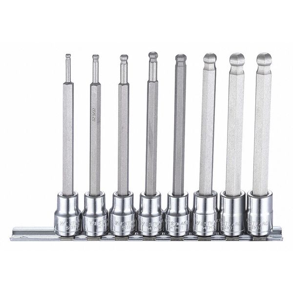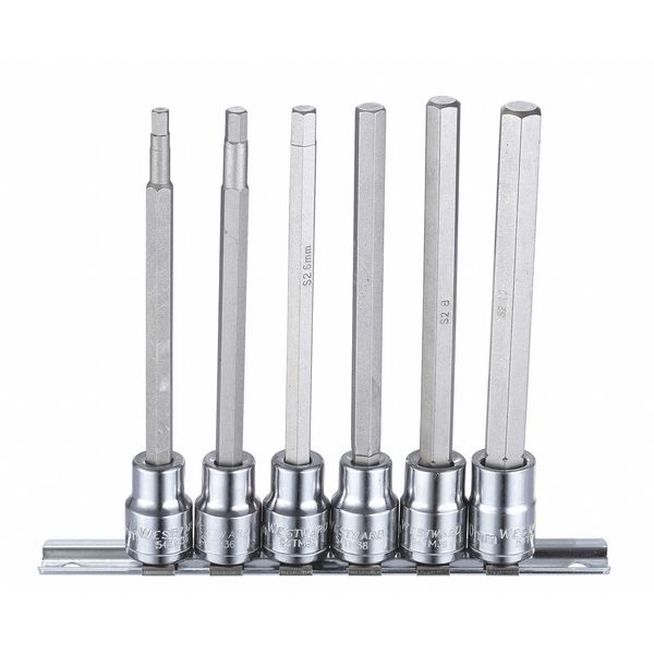 SKU G3701883CategoriesDescription Socket Bit Set, Tip Size 10 mm, 3 mm, 4 mm, 5 mm, 6 mm, 7 mm, 8 mm, 9 mm, Tip Style Hex, Overall Length 4 53/64 in, Drive Size 3/8 in, Number of Pieces 8, Alloy Steel, Chrome, Metric, Insulated No, For Screw Type HexgraingerSKU: 54TM66, mscSKU: , zoro_no: G3701883, mongo_id: 65bbe9f322d7a989a9989e2d