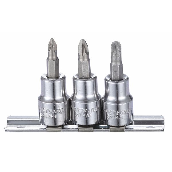 SKU G3374021CategoriesDescription Socket Bit Set, Tip Size #1, #2, #3, Tip Style Pozidriv, Overall Length 1 55/64 in, Drive Size 3/8 in, Number of Pieces 12, Alloy Steel, Chrome, SAE, Insulated No, For Screw Type PozidrivgraingerSKU: 54TN89, mscSKU: , zoro_no: G3374021, mongo_id: 65bbe6d53aaddbd5a90586cb