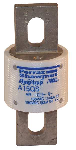 Description Semiconductor Fuse, 800 A, 150V AC, 150V DC, A15QS Series, Nonindicating, Fast Acting, Body Style Bolt-On, Nonrejection, Interrupt Rating 100kA at 150V AC, 50kA at 150V DC, Fuse Size 3-1/2 in L x 1-1/2 in dia, Length 3 1/2 in, Diameter 1 1/2 in, Equivalent Brand and Series Bussmann FWA, Littelfuse L15S, Mersen A15QS, Equivalent Series A15QS, FWA, L15S, Body Material Fiberglass, Single Element, Standards CE, UL Recognized, Guide JFHR8, File E60314