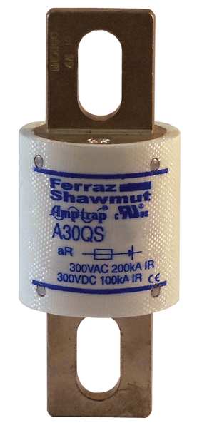 Description Semiconductor Fuse, 800 A, 300V AC, 300V DC, A30QS Series, Nonindicating, Fast Acting, Body Style Bolt-On, Nonrejection, Interrupt Rating 100kA at 300V DC, 200kA at 300V AC, Fuse Size 2-5/8 in L x 3 in dia, Length 2 5/8 in, Diameter 3 in, Equivalent Brand and Series Bussmann FWX, Littelfuse L25S, Mersen A30QS, Equivalent Series A30QS, FWX, L25S, Body Material Fiberglass, Single Element, Standards CE, UL Recognized, Guide JFHR2, File E60314