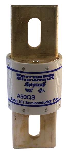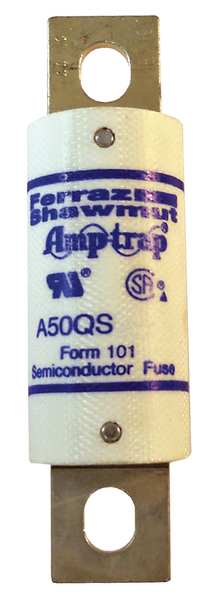 Description Semiconductor Fuse, 700 A, 500V AC, 500V DC, A50QS Series, Nonindicating, Fast Acting, Body Style Bolt-On, Nonrejection, Interrupt Rating 200kA at 500V AC, 87kA at 500V DC, Fuse Size 6-1/2 in L x 2-3/8 in dia, Length 6 1/2 in, Diameter 2 3/8 in, Equivalent Brand and Series A50QS, Bussmann FWH, Littelfuse L50S, Mersen A50P, Equivalent Series A50P, A50QS, FWH, L50S, Body Material Fiberglass, Single Element, Standards CE, UL Recognized, Guide JFHR2, File 60314, CSA Certified LR12636