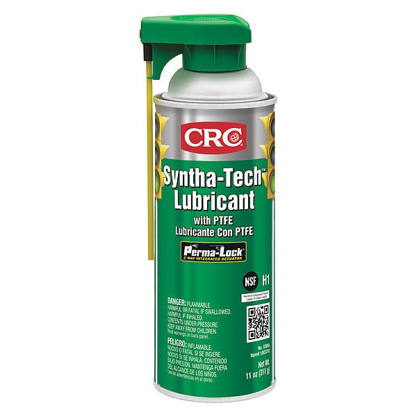 Syntha-Tech Multipurpose Lubricant, H1 Food Grade, PTFE, 11 oz Aerosol Can, WhiteSKU G4164876CategoriesDescription General Purpose Lubricant, Wet, CRC, Syntha-Tech(TM), Net Fill 11 oz, Container Size 16 oz, Lubricant Container Aerosol Can, Synthetic Oil, PTFE Primary Additive, Min. Operating Temp. -40 Degrees F, Max. Operating Temp. 450 Degrees F, NSF Rating H1 Food Grade, 50 State VOC Compliant Yes, VOC Content 98.1 Percent, Lubricant Color White, Odorless No, Flammable Flammability, Flammable Aerosol (Category 2), Flash Point 117 Degrees F, Standards NSF Registered 142820, Category Code H1graingerSKU: null, mscSKU: null, zoro_no: G4164876, mongo_id: 65bbe6243aaddbd5a900e64e