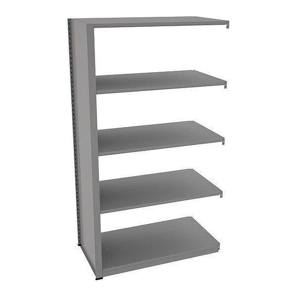 SKU G1972420Categories Raw MaterialsDescription Boltless Shelving, Low Profile, Overall Depth 24 in, Overall Height 84 in, Overall Width 36 in, Shelf Gauge 14 ga, Shelf Adjustment Increments 1 1/2 in, Steel, Particleboard, Steel, (2) Posts, (5) Low Profile Deck Levels, Includes Decking Yes, 600 lb, Whole Unit Load Capacity 3,000 lb, Add-On, Open, Post Gauge 16 ga, Number of Shelves 5, Maximum Post Load Capacity 8,000 lb with Beams Evenly Spaced at 24 in, Powder Coated, Light-Duty, GraygraingerSKU: 36K435, mscSKU: , zoro_no: G1972420, mongo_id: 65bbe7863aaddbd5a909e18a