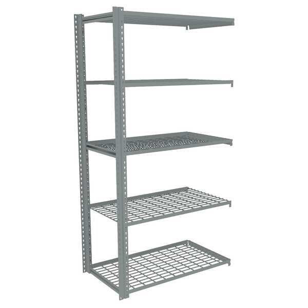 $477.49 / eachWeb priceBoltless Shelving, 24"D x 42"W x 84"H, 5 Shelves, Carbon SteelSKU G2158838Categories Raw MaterialsDescription Boltless Shelving, Low Profile, Overall Depth 24 in, Overall Height 84 in, Overall Width 42 in, Shelf Gauge 14 ga, Shelf Adjustment Increments 1 1/2 in, Steel, Steel, Steel, (10) Beams, (2) Posts, Includes Decking Yes, 550 lb, Whole Unit Load Capacity 2,750 lb, Add-On, Open, SCS Indoor Advantage(R) Certified, Post Gauge 16 ga, Number of Shelves 5, Maximum Post Load Capacity 8,000 lb with Beams Evenly Spaced at 24 in, Powder Coated, Light-Duty, GraygraingerSKU: 44P750, mscSKU: , zoro_no: G2158838, mongo_id: 65bbe84c22d7a989a98ea27b