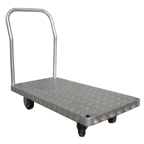 $721.24 / eachWeb priceStandard Platform Truck, 2000 lb., 36 In LSKU G6080173Categories Material HandlingDescription Aluminum-Deck Platform Truck, Load Capacity 2,000 lb, Overall Height 41 in, Overall Length 36 in, Overall Width 24 in, Deck Construction Solid, Deck Material Aluminum, Deck Gauge 11 ga, Deck Height 8 1/2 in, Deck Length 36 in, Deck Width 24 in, Deck Surface Ribbed, Frame Material Aluminum, Handle Type Raised, Side Panel Type No Side Panels, Number of Platforms 1, Color SilvergraingerSKU: 13X471, mscSKU: , zoro_no: G6080173, mongo_id: 65bbe8c922d7a989a991631a