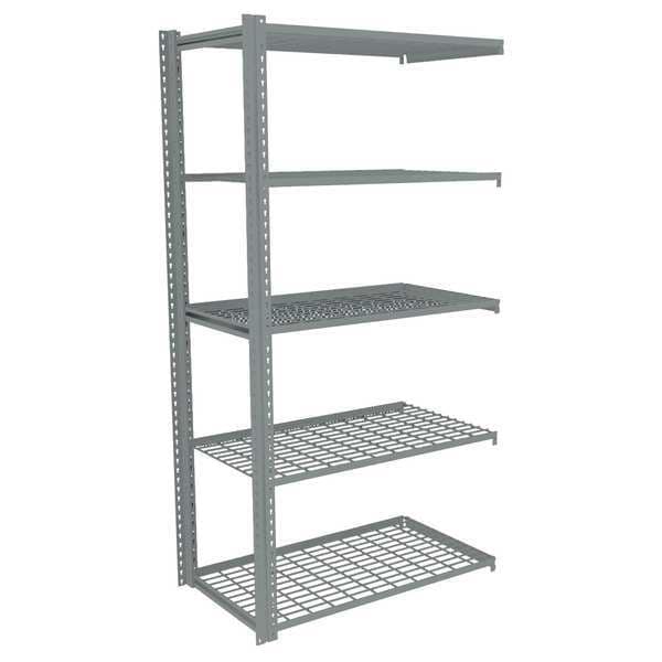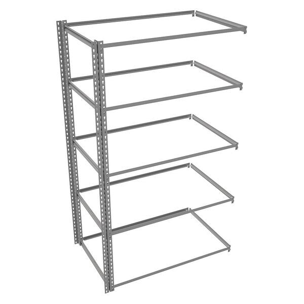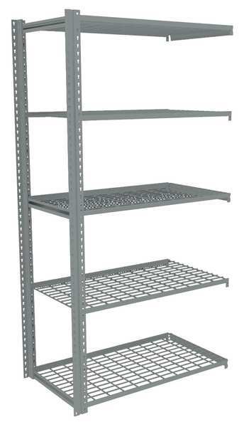 SKU G1972253Categories Raw MaterialsDescription Boltless Shelving, Low Profile, Overall Depth 24 in, Overall Height 84 in, Overall Width 48 in, Shelf Gauge 14 ga, Shelf Adjustment Increments 1 1/2 in, Steel, None, Steel, (2) Posts, (5) Low Profile Deck Levels, Includes Decking No, 500 lb, Whole Unit Load Capacity 2,500 lb, Add-On, Open, SCS Indoor Advantage(R) Certified, Post Gauge 16 ga, Number of Shelves 5, Maximum Post Load Capacity 8,000 lb with Beams Evenly Spaced at 24 in, Powder Coated, Light-Duty, GraygraingerSKU: 36K417, mscSKU: , zoro_no: G1972253, mongo_id: 65bbe7d19a749db82275b2c1