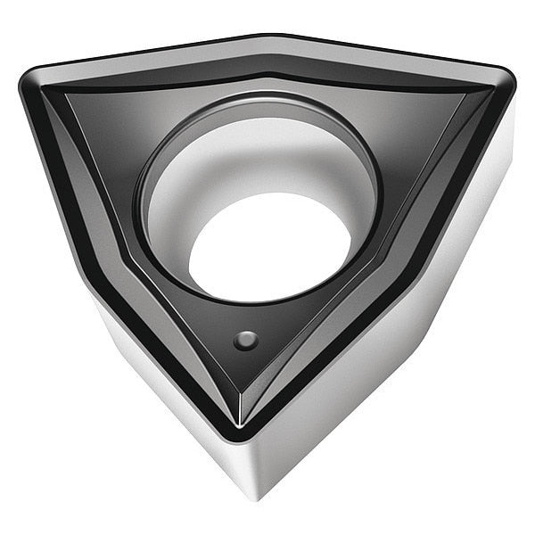 • Trigon Turning Insert, Positive, Right Hand, WCMT, 1/64", CarbideTiAlN+Al2O3+(Al)