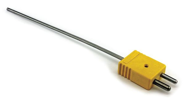$31.99 / eachWeb priceThermocouple Probe, Type K, 6in L, 22 AWGSKU G0025509CategoriesDescription Thermocouple Probe, Type K, Grounded, For Application Air, Gas, Liquid, 1/4 in MNPT, 1/8 in MNPT, Mini Plug, Probe Size 1/8 in x 6 in, Cable Length 6 in, -325 Degrees to 2,280 Degrees F/-200 Degrees to 1,250 Degrees C, ThermocouplegraingerSKU: 36GL14, mscSKU: , zoro_no: G0025509, mongo_id: 65bbe7d63aaddbd5a90bc67f