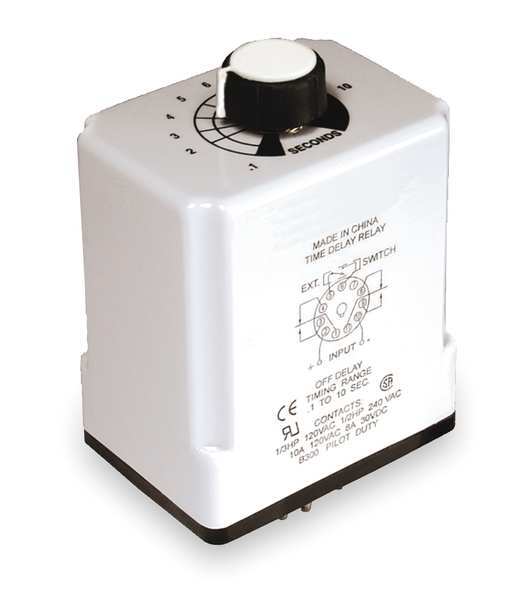 SKU G2539896CategoriesDescription Single Function Time Delay Relay, Adjustment Method Potentiometer, Base Shape Octal, Coil Voltage 240V AC, Contact Form DPDT, Contact Rating (AC) 10 A @ 240V, Contact Rating (DC) 10 A @ 30V, Current Rating 10 A, Number of Delay Functions 1, Delay Function Off Delay, Electrical Connection Socket, Flat Pin Width Not Applicable, IP Rating IP20, Input Voltage 240V AC, Minimum Time Setting 0.1 sec, Maximum Time Setting 10 sec, Number of Pins 11, Sealing Enclosed, Mounting Style Plug-IngraingerSKU: 1EGC3, mscSKU: , zoro_no: G2539896, mongo_id: 65bbe5cb3aaddbd5a9fe7f07