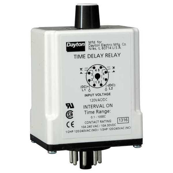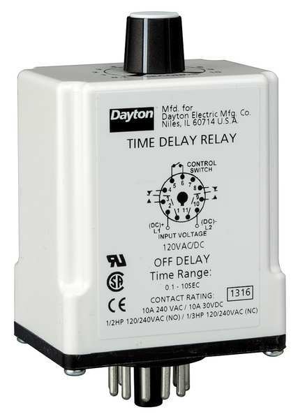 Time Delay Relay, 120VAC/DC, 10A, SPDT