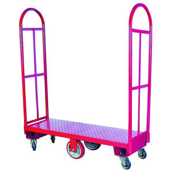 Description Narrow Steel-Deck Platform Truck, Load Capacity 2,000 lb, Overall Height 60 1/4 in, Overall Length 50 1/2 in, Overall Width 16 in, Deck Construction Solid, Deck Material Steel, Deck Gauge 10 ga, Deck Height 10 3/4 in, Deck Length 48 in, Deck Width 16 in, Deck Surface Smooth, Frame Material Steel, Frame Finish/Coating Powder Coated, Handle Type (2) Tall, Side Panel Type No Side Panels, Number of Platforms 1, Color Red