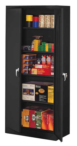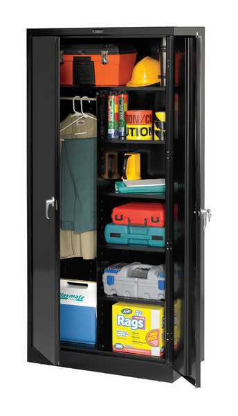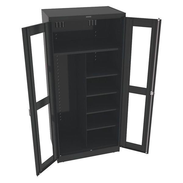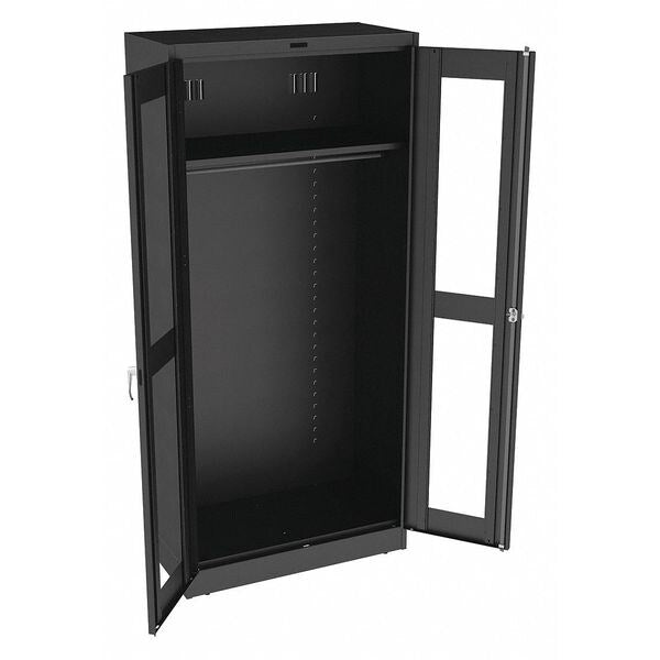 SKU G9834912CategoriesDescription Storage Cabinet, Base Type Leveling, Body Panel Type Solid, Cabinet Color Black, Cabinet Material Steel, Cabinet Storage Components Hanging Rods, Shelves, Door Handle Type Swing, Door Type Clearview, Duty Rating Medium Duty, For Use Indoors/Outdoors No, Frame Assembled Assembled, Load Capacity per Shelf 150 lb, Lock Type Keyed, Mobility Stationary, Mounting Location Freestanding, Number of Shelves 1, Overall Depth 18 in, Overall Height 78 in, Overall Width 36 in, Audit Trail Storage NonegraingerSKU: 9WAV8, mscSKU: , zoro_no: G9834912, mongo_id: 65bbe85f22d7a989a98efb5a