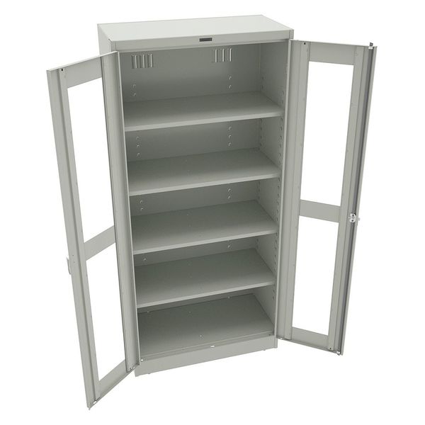SKU G9840153CategoriesDescription Storage Cabinet, Base Type Leveling, Body Panel Type Solid, Cabinet Color Light Gray, Cabinet Material Steel, Cabinet Storage Components Shelves, Door Handle Type Swing, Door Type Clearview, Duty Rating Medium Duty, For Use Indoors/Outdoors No, Frame Assembled Assembled, Load Capacity per Shelf 200 lb, Lock Type Keyed, Mobility Stationary, Mounting Location Freestanding, Number of Shelves 4, Overall Depth 18 in, Overall Height 78 in, Overall Width 36 in, Audit Trail Storage NonegraingerSKU: 9GL97, mscSKU: , zoro_no: G9840153, mongo_id: 65bbe9db22d7a989a997f2cb