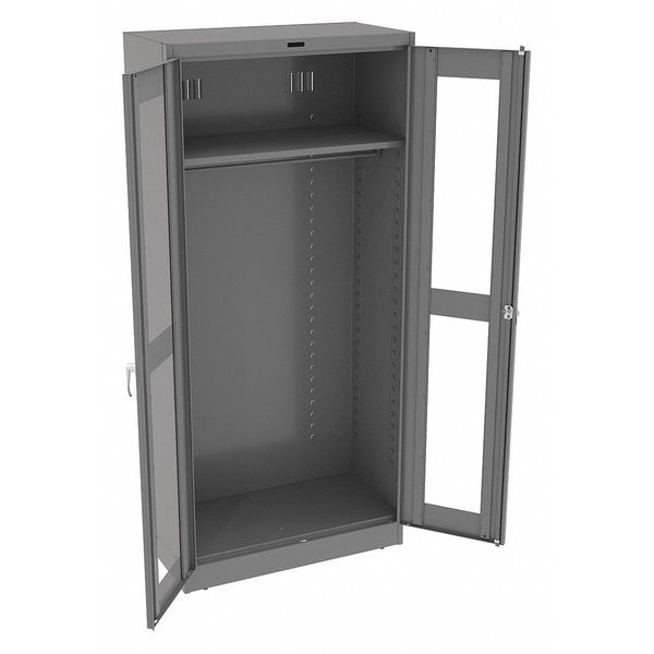 SKU G9845595CategoriesDescription Storage Cabinet, Base Type Leveling, Body Panel Type Solid, Cabinet Color Medium Gray, Cabinet Material Steel, Cabinet Storage Components Hanging Rods, Shelves, Door Handle Type Swing, Door Type Clearview, Duty Rating Medium Duty, For Use Indoors/Outdoors No, Frame Assembled Assembled, Load Capacity per Shelf 200 lb, Lock Type Keyed, Mobility Stationary, Mounting Location Freestanding, Number of Shelves 1, Overall Depth 24 in, Overall Height 78 in, Overall Width 36 in, Audit Trail Storage NonegraingerSKU: 8TV06, mscSKU: , zoro_no: G9845595, mongo_id: 65bbee06526e052139ae6595
