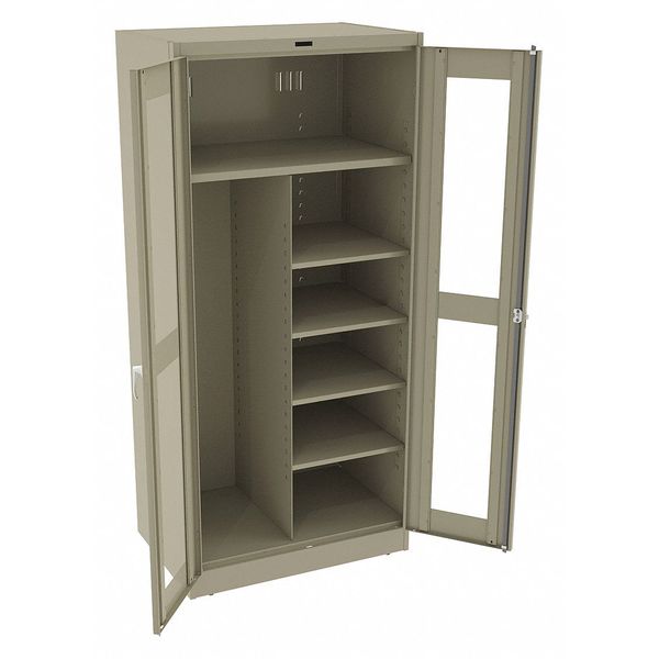 SKU G9836066CategoriesDescription Storage Cabinet, Base Type Leveling, Body Panel Type Solid, Cabinet Color Sand, Cabinet Material Steel, Cabinet Storage Components Hanging Rods, Shelves, Door Handle Type Swing, Door Type Clearview, Duty Rating Medium Duty, For Use Indoors/Outdoors No, Frame Assembled Assembled, Load Capacity per Shelf 200 lb, Lock Type Keyed, Mobility Stationary, Mounting Location Freestanding, Number of Shelves 5, Overall Depth 24 in, Overall Height 78 in, Overall Width 36 in, Audit Trail Storage NonegraingerSKU: 9T083, mscSKU: , zoro_no: G9836066, mongo_id: 65bbe5ce3aaddbd5a9fe9309