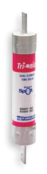 Description Fuse, 17 1/2 A, 250V AC, 160V DC, Class RK5, TR-R Series, Nonindicating, Time Delay, Body Style Cylindrical, Fits Fuse Block Style Rejection, Interrupt Rating 200kA at 250V AC, 20kA at 160V DC, Fuse Size 2 in L x 9/16 in dia, Length 2 in, Diameter 9/16 in, Equivalent Brand and Series Bussmann FRN-R, Edison ECNR, Littelfuse FLNR, Mersen TR-R, Equivalent Series ECNR, FLNR, FRN-R, TR-R, Compatible Fuse Block Series 2HKRFB, Body Material Polyester, Dual Element, Standards CSA, UL