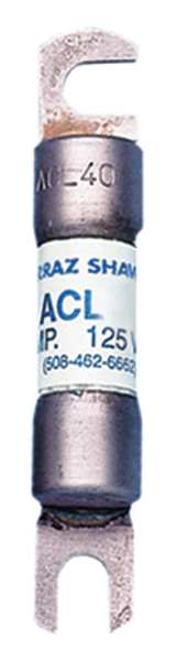 Description Forklift Limiter Fuse, 50 A, 125V AC, 125V DC, ACL Series, Nonindicating, Time Delay, Body Style Bolt-On, Nonrejection, Interrupt Rating 10kA at 125 V DC, 10kA at 125V AC, Fuse Size 3-1/16 in L x 19/32 in dia, Length 3 1/16 in, Width Not Applicable, Depth Not Applicable, Diameter 19/32 in, Equivalent Brand and Series Littelfuse CCL, Mersen ACL, Equivalent Series ACL, CCL, Body Material Poly Tube, Dual Element, Standards UL Recognized Component To Standard 248-1, File E60314 JFHR2