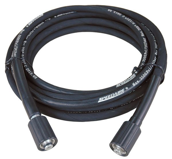 SKU G5302622CategoriesDescription Pressure Washer Hose, Hose Inside Dia. 3/8 in, Hose Outside Dia. 0.74 in, Hose Length 50 ft, Hose Color Black, Hose Tube Material Polyethylene, Hose Cover Material Rubber, Max. Working Pressure @ 70 F 4,500 psi, Temp. Range 0 Degrees to 250 Degrees F, Safety Factor 4:1, Hose Fitting A Material Malleable Iron, Hose Fitting B Material Malleable Iron, Hose Fitting A Type MNPT, Hose Fitting B Type MNPT, Hose Fitting A Size 3/8 in, Hose Fitting B Size 3/8 in, Hose Configuration Coupled AssemblygraingerSKU: 22KE06, mscSKU: , zoro_no: G5302622, mongo_id: 65bbe8289a749db8227790f4