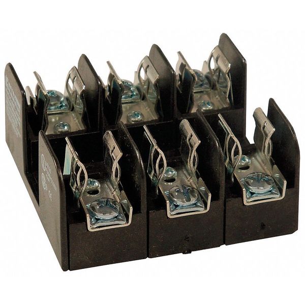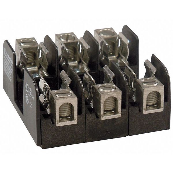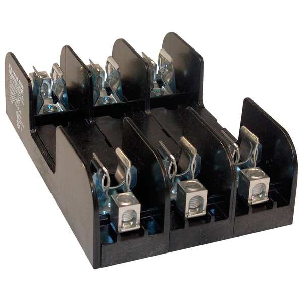 Description Fuse Block, Fits Fuse Type Industrial, Fuse UL Class R, 0 to 30 A, Number of Poles 3, 600V AC/DC, For Fuse Size 5 in L x 13/16 in dia, Compatible Fuse Series A6D-R, A6K-R, FRS-R, KLSR, KTS-R, KWS-R, LLSRK, LPS-RK, TRS-R, Series 6HKRFB, Nonindicating, Rejection, Fuse Block Design Open, Wire Range 14 to 2 AWG, Mounting Style Bolt-Down, Body Material Glass Filled Polycarbonate, Connector Type Box Lug, Height 7 in, Width 4.55 in, Length 2 in, Spring Reinforced Clip Yes