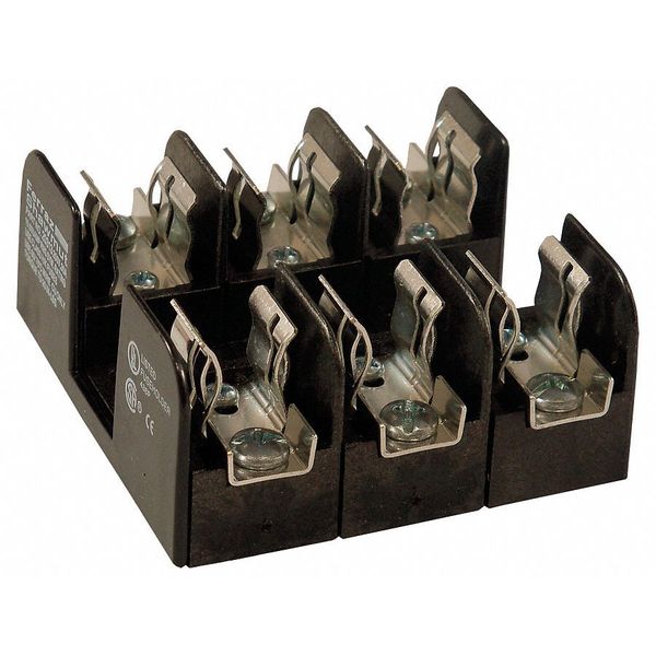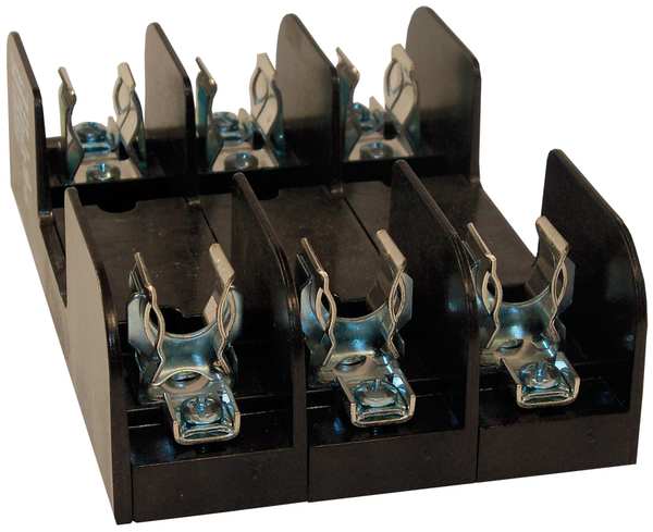 Description Fuse Block, Fits Fuse Type Industrial, Fuse UL Class R, 0 to 30 A, Number of Poles 3, 600V AC/DC, For Fuse Size 5 in L x 13/16 in dia, Compatible Fuse Series A6D-R, A6K-R, FRS-R, KLSR, KTS-R, KWS-R, LLSRK, LPS-RK, TRS-R, Series 6HKRFB, Nonindicating, Rejection, Fuse Block Design Open, Wire Range 14 to 10 AWG, Mounting Style Bolt-Down, Body Material Glass Filled Polycarbonate, Connector Type Pressure Plate, Height 2.12 in, Width 4.66 in, Length 4 in, Spring Reinforced Clip Yes