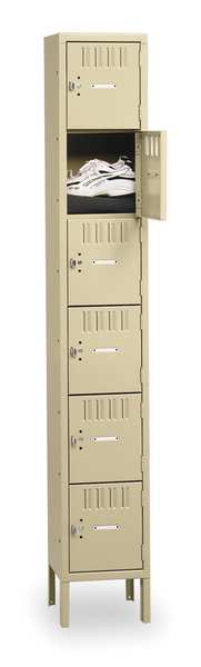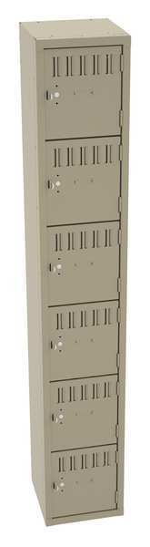 Box Locker, 12 in W, 15 in D, 78 in H, (1) Wide, (6) Openings, Sand