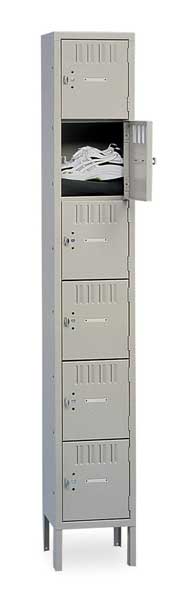 Box Locker, 12 in W, 15 in D, 78 in H, (1) Wide, (6) Openings, Gray