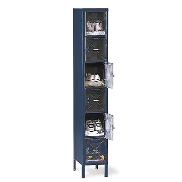 $491.24 / eachWeb priceBox Locker, 12 in W, 18 in D, 78 in H, (1) Wide, (6) Openings, BlueSKU G7264634CategoriesDescription Box Locker, Audit Trail Storage None, Frame Assembled Assembled, Number of Tiers 6, Number of Units Wide 1, Door Type Clearview, Frame Material Thickness 16 ga, Includes Number Plates Yes, Locker Color Blue, Lock Type Padlock Hasp, Overall Depth 18 in, Overall Height 78 in, Overall Width 12 in, Handle Type Pull, Includes ID Plate, Locker Material Steel, Number of Lockers 6, Opening Depth 16 7/8 in, Opening Height 10 5/8 in, Opening Width 9 5/8 ingraingerSKU: 8DMV6, mscSKU: , zoro_no: G7264634, mongo_id: 65bbe6563aaddbd5a9021fd9