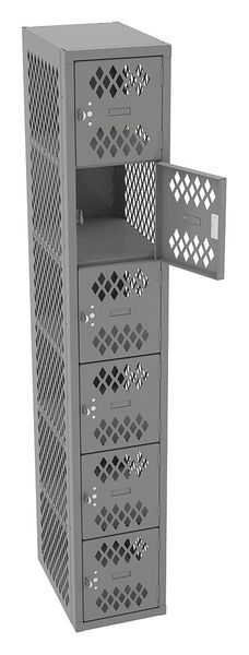 SKU G7266664CategoriesDescription E1579, Audit Trail Storage None, Frame Assembled Assembled, Number of Tiers 6, Number of Units Wide 1, Door Type Ventilated, Frame Material Thickness 16 ga, Includes Number Plates Yes, Locker Color Gray, Lock Type Padlock Hasp, Overall Depth 18 in, Overall Height 72 in, Overall Width 12 in, Handle Type Pull, Includes E1579, Locker Material Steel, Number of Lockers 6, Opening Depth 16 7/8 in, Opening Height 10 5/8 in, Opening Width 9 5/8 ingraingerSKU: 8WY96, mscSKU: , zoro_no: G7266664, mongo_id: 65bbe88b22d7a989a98fd33f