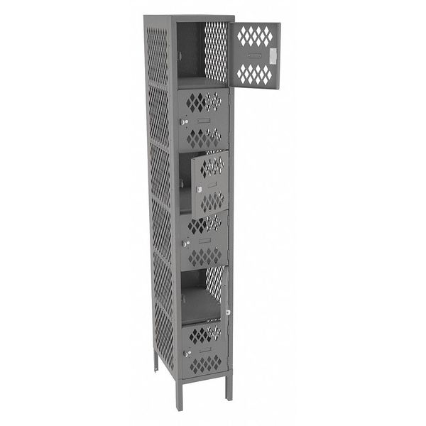 Box Locker, 12 in W, 18 in D, 66 in H, (1) Wide, (5) Openings, Gray