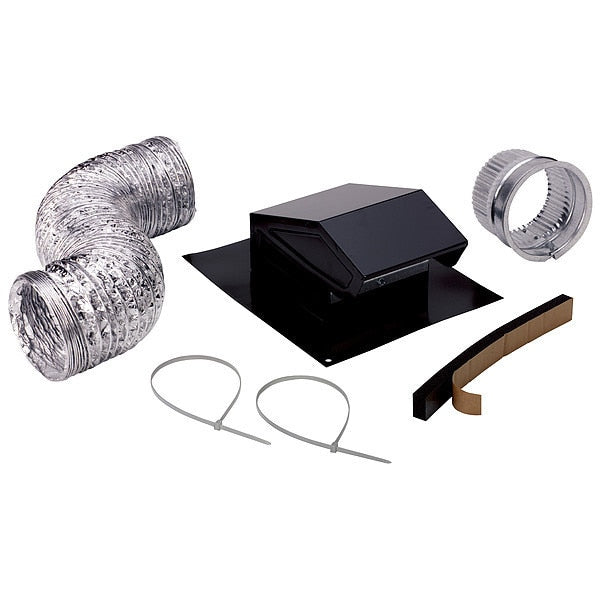 Roof Vent Kit, Flexible Duct, 8 ft. LSKU G3007471CategoriesDescription Roof Vent Kit, For Nominal Duct Diameter 3 in, 4 in, For Duct Height Not Applicable, For Duct Width Not Applicable, Material Steel, Overall Length 11 in, Product Type Roof Vent Kit, Standards UL 181 Class 1, Finish Powder Coat, Color Black, Shape Cap, Overall Width 11 in, Screen Included Yes, Includes Duct, Duct Connector, Mounting Screws, Nylon Zip Ties, ReducergraingerSKU: null, mscSKU: null, zoro_no: G3007471, mongo_id: 65bbe62a3aaddbd5a901077c