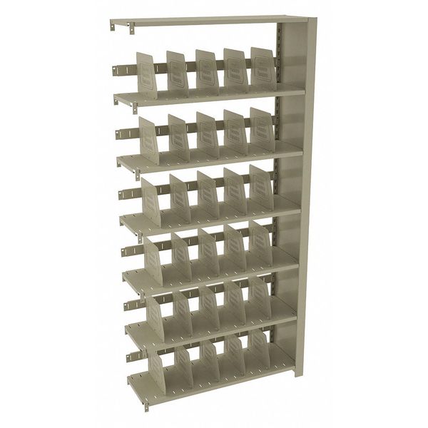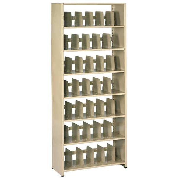 SKU G5744051CategoriesDescription Open File Shelving, Add-On, Steel Construction, Sand Color, Powder Coated Finish, 76 in, 36 in, 12 in, Number of Shelves 6, Shelf Capacity 500 lb, Includes (1) T Upright, (14) Shelf Supports, (30) Adjustable Dividers, (6) Backstops, (7) ShelvesgraingerSKU: 5UFA5, mscSKU: , zoro_no: G5744051, mongo_id: 65bbee36526e052139af9594