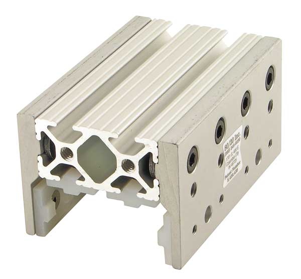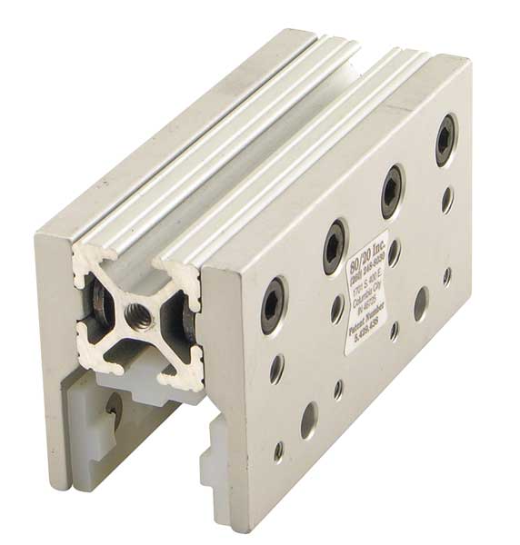 Description Linear Bearing, Standard Linear, Overall Height 50.1 mm, Overall Length 160 mm, Overall Width 143.4 mm, Housing Material Aluminum, Mounting Hole Diameter 8.3 mm, Anodized, Silver, System of Measurement Metric, 40 Series, Double Flanged, For Number of Slots 4, Standard, Flange Thickness 9 mm, Pad Material UHMW Plastic, Compatible Brand and Series 40 Series