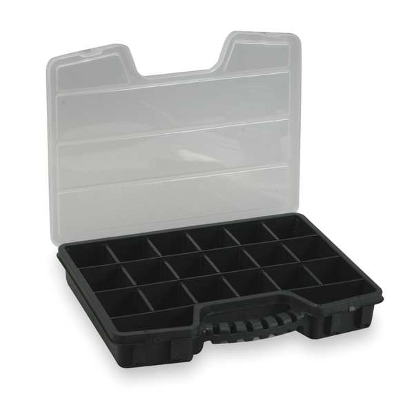 SKU G0677074CategoriesDescription Adjustable Compartment Box, Closure Type Double Latch, Color Black, Electrostatic Discharge No, Material Plastic, Maximum Number of Compartments 46, Number of Adjustable Dividers 10, Overall Height 3 1/2 in, Overall Length 11 1/4 in, Overall Width 15 in, Includes Handle Yes, Shape RectangulargraingerSKU: 2HFR2, mscSKU: , zoro_no: G0677074, mongo_id: 65bbe5be3aaddbd5a9fe4010