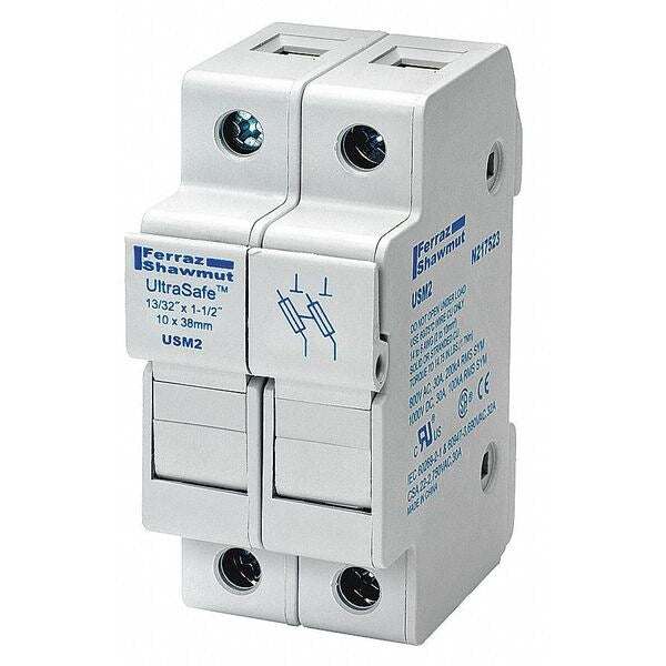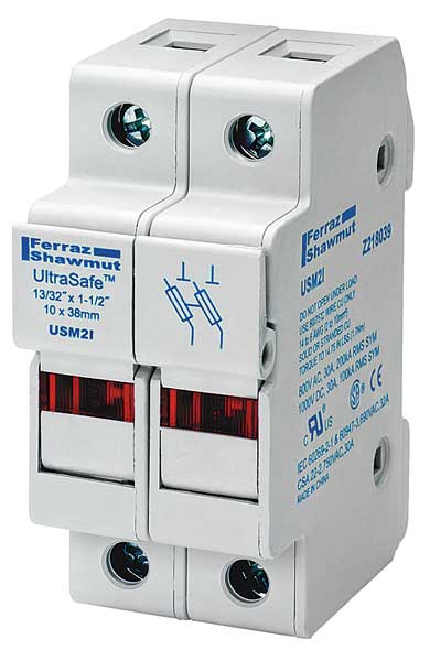 SKU G2146347CategoriesDescription Finger-Safe Fuse Block, Body Material Polyamide, Compatible Fuse Series ATDR, ATMR, ATQR, CCMR, FNQ-R, KLDR, KLKR, KTK-R, LP-CC, Pressure Plate, Amp Range 0 to 30 A, Fits Fuse Type Class CC, For Fuse Size 1-1/2 in L x 13/32 in dia, Fuse Block Design Finger-Safe, Rejection, Height 2.32 in, Length 3.07 in, Mounting Style DIN Rail, Number of Poles 2, Standards CSA Certified, UL Listed, Visual Indication Nonindicating, Voltage Rating 600V AC/DC, Width 1.38 in, Wire Range 14 to 6 AWGgraingerSKU: 4ZCP9, mscSKU: , zoro_no: G2146347, mongo_id: 65bbe85f9a749db82278983e