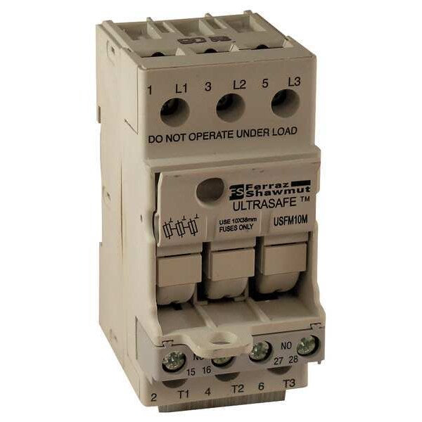 SKU G0789257CategoriesDescription Finger-Safe Fuse Block, Body Material Polyamide, Compatible Fuse Series ATDR, ATMR, ATQR, CCMR, FNQ-R, KLDR, KLKR, KTK-R, LP-CC, Screw, Amp Range 0 to 30 A, Includes 1NO/1NC Auxiliary Contact, Fits Fuse Type Class CC, For Fuse Size 1-1/2 in L x 13/32 in dia, Fuse Block Design Finger-Safe, Nonrejection, Height 2.27 in, Length 3.54 in, Mounting Style DIN Rail, Number of Poles 3, Standards CSA Certified, UL Listed, Visual Indication Indicating, Voltage Rating 600V AC/DC, Width 1.77 ingraingerSKU: , mscSKU: , zoro_no: G0789257, mongo_id: 65bbe6fd3aaddbd5a9068213