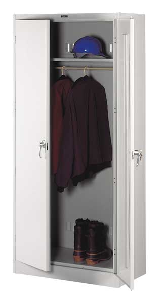 SKU G2170948CategoriesDescription Storage Cabinet, Base Type Leveling, Body Panel Type Solid, Cabinet Color Light Gray, Cabinet Material Steel, Cabinet Storage Components Hanging Rods, Shelves, Door Handle Type Swing, Door Type Solid, Duty Rating Medium Duty, For Use Indoors/Outdoors No, Frame Assembled Assembled, Load Capacity per Shelf 150 lb, Lock Type Keyed, Mobility Stationary, Mounting Location Freestanding, Number of Shelves 1, Overall Depth 18 in, Overall Height 78 in, Overall Width 36 in, Audit Trail Storage NonegraingerSKU: 3HNJ5, mscSKU: , zoro_no: G2170948, mongo_id: 65bbe7983aaddbd5a90a3ac6